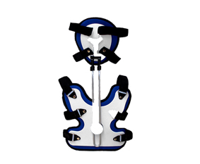 【產(chǎn)品結(jié)構(gòu)】由胸廓、枕部、下顎部、胸帶和金屬組件組成。一般由布料、海綿、粘扣、織帶、塑料以及金屬件制成。無(wú)源產(chǎn)品。非無(wú)菌提供,可重復(fù)使用。